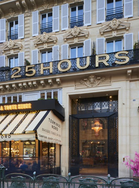 This surprising hotel, across the street from the busiest train station in Europe, is designed around the locals who play important roles in the life of the Parisian neighborhoods around the Gare du Nord. VISTO's far-reaching concept brings the energy, color, and sounds of the area into the hotel.