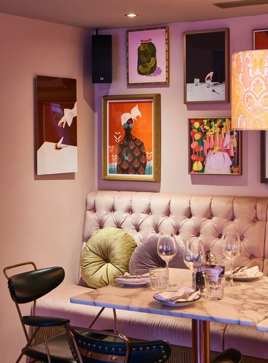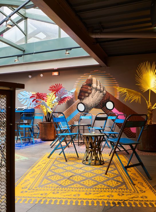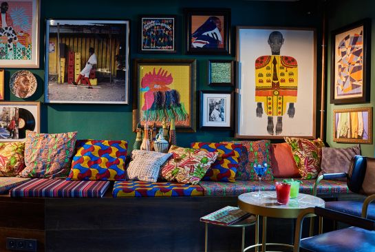 VISTO developed the concept for the Sape Bar—noted by Vogue as one of the most beautiful bars in Paris—around the Congolese movement of well-dressed men known as sapeurs. The owner of the famous shop and the center of the community features in the mural by Brazilian street artist Nunca, while the movement is celebrated in a colorful collection of art filling the walls of the bar. The bar’s cocktails were inspired by the movement’s bravery, color, and elegance.